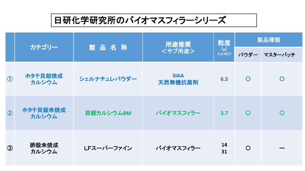 - 抗菌剤の一般名:焼成ホタテ貝殻水酸化カルシウム